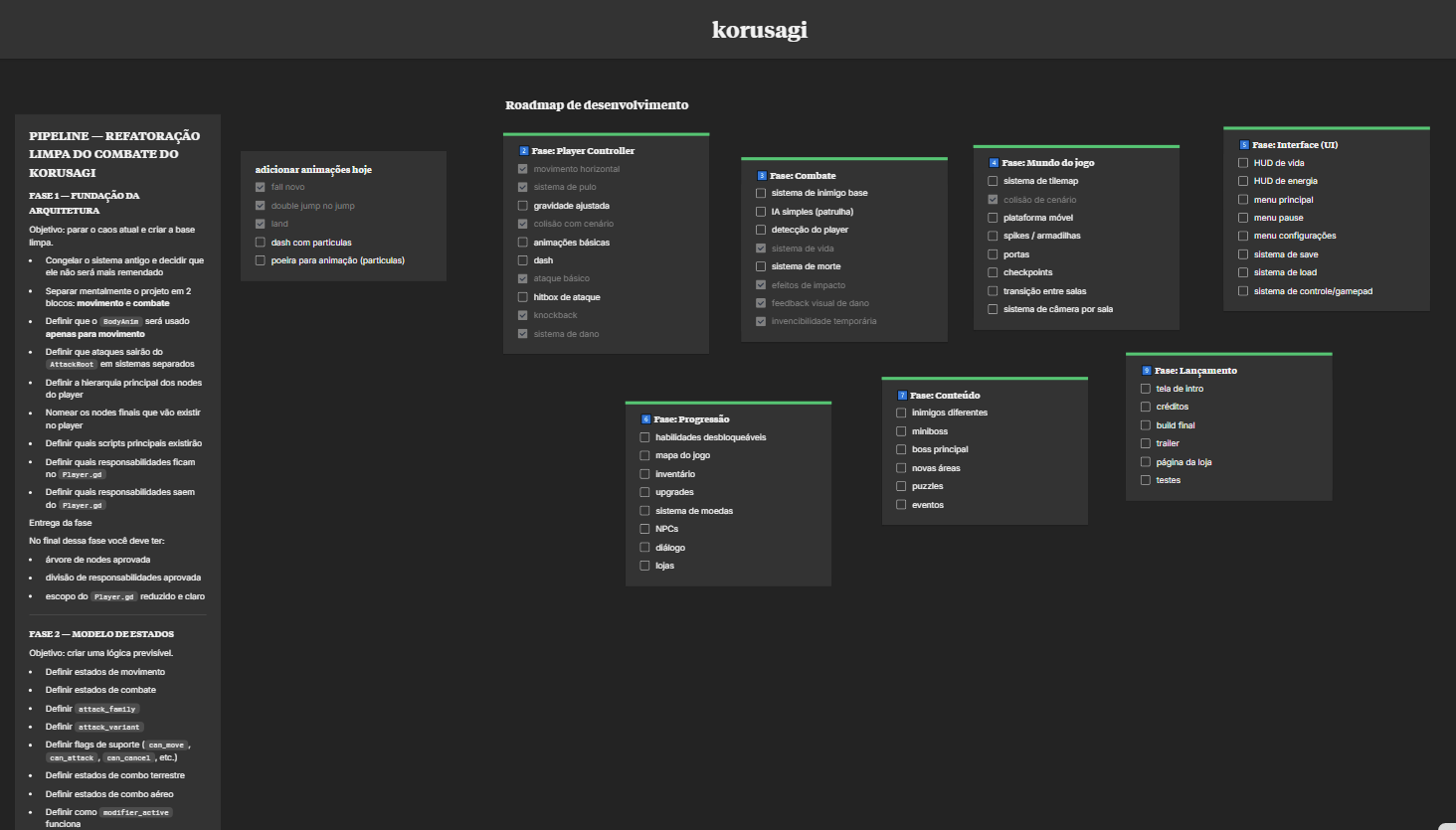 Estou refatorando bastante coisa pra deixar o código mais limpo e evitar bugs estranhos, principalmente no combate e na câmera.
